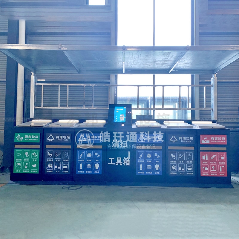 6分類智能垃圾箱,箱體高度1100mm,投口門為上開啟,可感應(yīng),可刷卡開啟,多種投放模式,方便用戶投遞,安裝27寸觸摸屏,可查看用戶投遞信息,存儲至云端,用戶也可選擇投遞廣告或者視頻媒體宣傳。